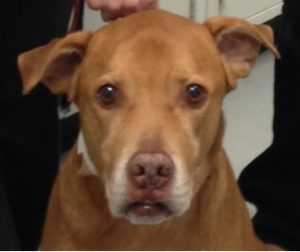 Theo is a ten-year old mixed breed with a large mass on his hind leg.